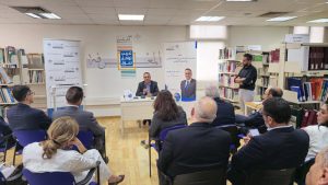 واستُهلت الندوة التي حضرها دبلوماسيون ونواب وأكاديميون بكلمة ترحيبية لرئيسة المعهد د. لمياء المبيّض بساط وأخرى للمدير الإداري والمالي لمعهد باسل فليحان المالي والاقتصادي غسان الزعني، وتحدث فيها د. نضال أبوزكي، مدير عام “مجموعة أورينت بلانيت” الاستشارية، مؤكداً أهمية التكنولوجيا الذكية وعملية التحول الرقمي في فتح آفاقاً واسعة لتعزيز رفاهية المجتمع وتحسين جودة الحياة وزيادة كفاءة الخدمات وتعزيز الاستدامة في المدن العربية.